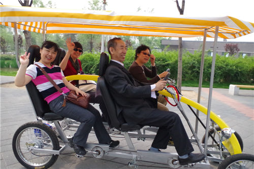 我們一大早就出發(fā)了,早上的空氣很新鮮,太陽也不是很曬,整體感覺很舒適。進(jìn)入園博園,沿途景色實(shí)在太美了,我們租了雙人自行車,就這么走走停停,一路有山有水、有鮮花、有樹木讓人目不暇接。