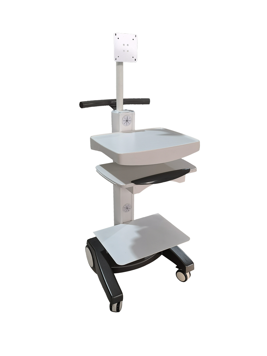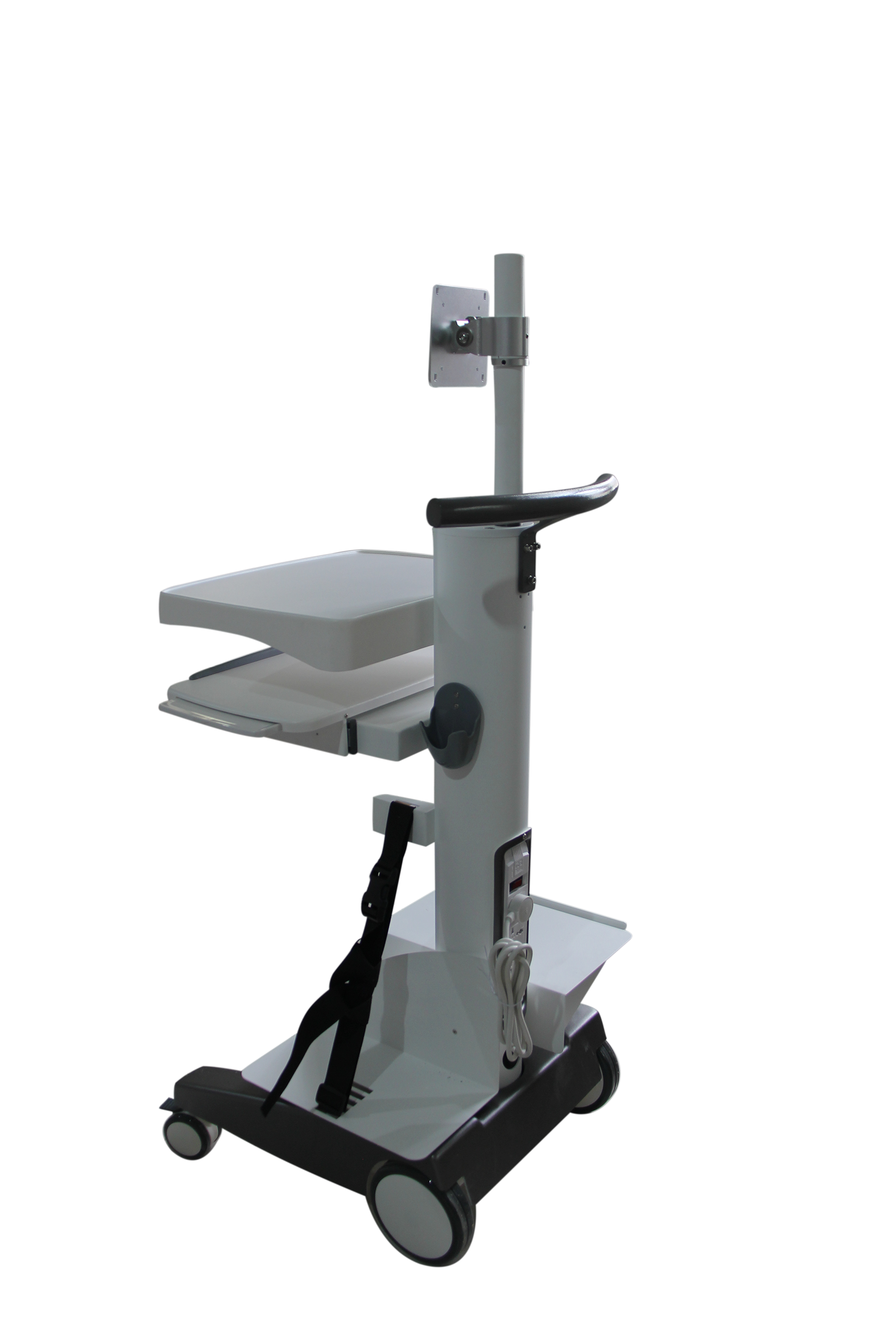 本推車(chē)適合多種配置,包括筆記本電腦、電腦主機(jī)搭配顯示器。可放置鍵盤(pán)、鼠標(biāo)、主機(jī)和打印機(jī)。合理理線(xiàn)裝置,配置電源插座。