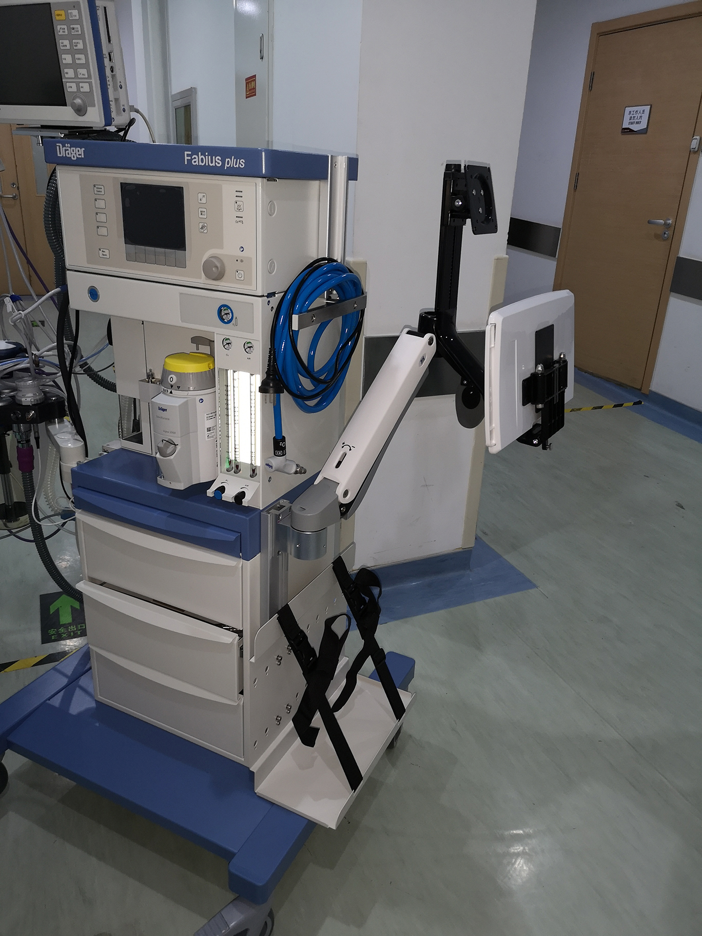 本產(chǎn)品主要由顯示器支架、支臂、支臂座、鍵盤托架、鼠標托盤、鼠標盒等構(gòu)成;配有多種接口,可安裝在德爾格、邁瑞、歐美達、海倫、誼安、百斯等品牌的麻醉機上,也可安裝在ICU、手術(shù)室內(nèi)的各種品牌吊塔及墻壁上.